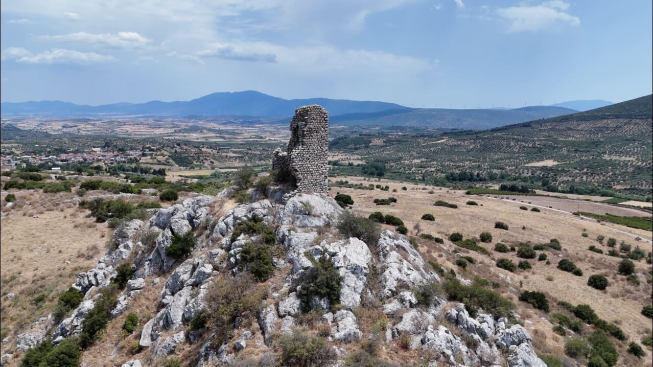 Το ύψωμα μπροστά μας, όπου διακρίνεται και ο μεσαιωνικός πύργος, είναι ο Παλιοβορός.