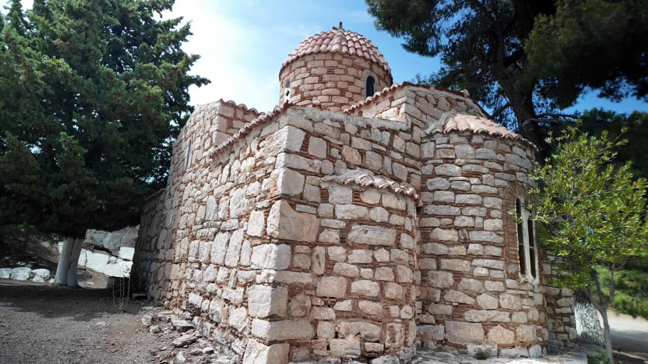 Κατευθυνόμαστε προς το εξωκλήσι της Αναστάσεως του Χριστού. Ο μνημειακός αυτός ναός της Αναστάσεως του Χριστού ή Μεταμορφώσεως του Σωτήρος ο οποίος έχει επικρατήσει να λέγεται «Χριστός», που πρόκειται μάλλον για τον κοιμητηριακό ναό, αναστηλώθηκε το 1969 υπό την επίβλεψη του μακαριστού Παύλου Λαζαρίδη και την πρόθυμη συμπαράσταση της αρχιτέκτονος Άννας Ψωμά.